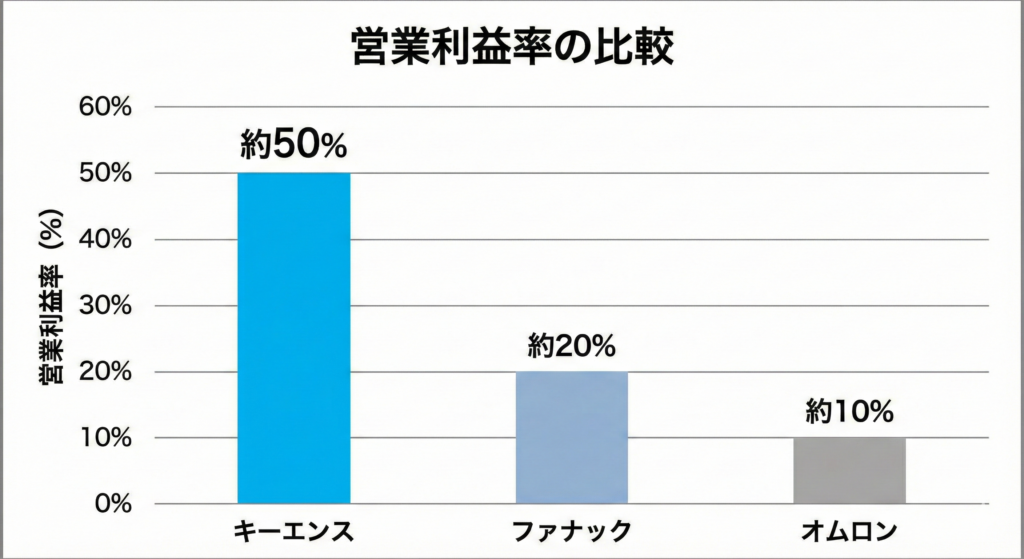同業他社と比較すると、キーエンスの「異常さ」がより際立ちます。FA機器大手のオムロン、ファナックと比較してみましょう。
